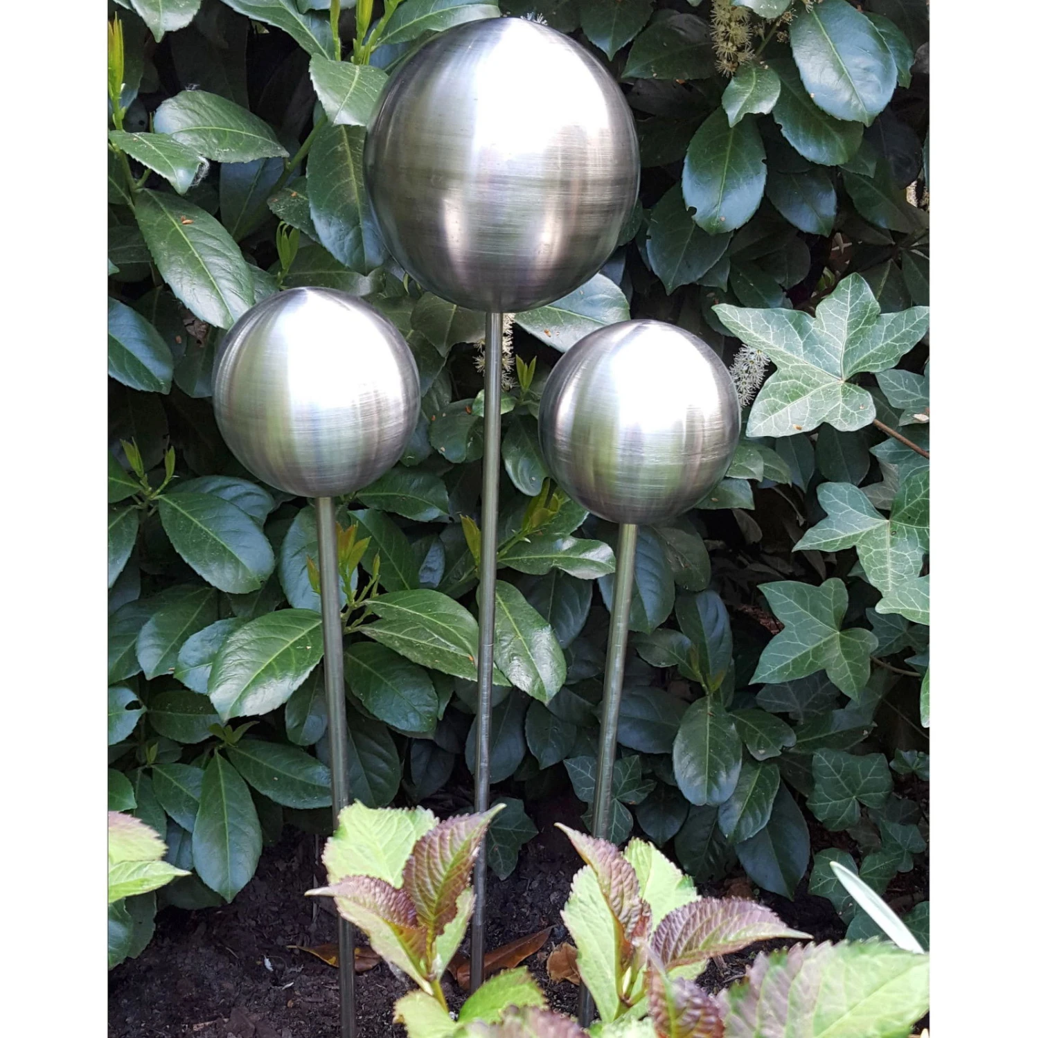 Die eleganten Beetstecker „Rosenkugeln auf Stab“ lockern Ihr Blumenbeet charmant auf. Sie sind matt gebürstet, bestehen aus robustem Edelstahl und verschönern Rosen- und Pflanzbeete aller Art. Auch bei größeren Pflanzen erweisen sich die Beetstecker als schicker Blickfang, den Sie künftig nicht mehr missen möchten. Er misst 80 cm und wird einfach in die Erde gesteckt.