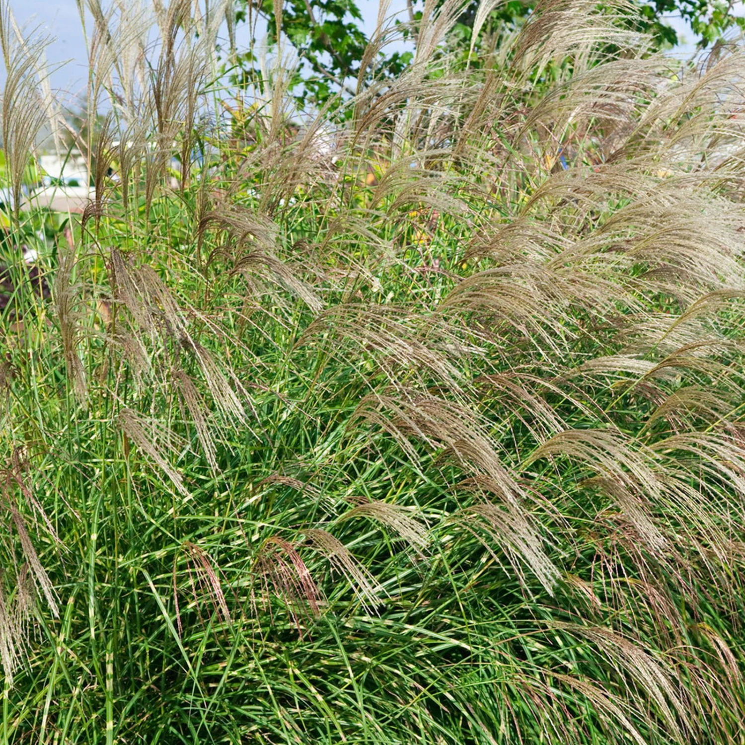 Pflanzware frisch aus unserer Gärtnerei: Winterhartes Gartengras mit wunderschöner Blattfärbung und silbrigen Blütenwedeln